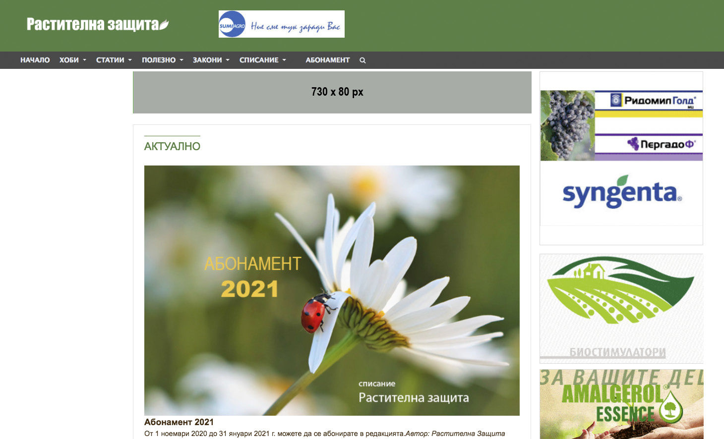| Банер горе / разделен 730 x 80 px всички страници Цена: 7 лв./ ден |
